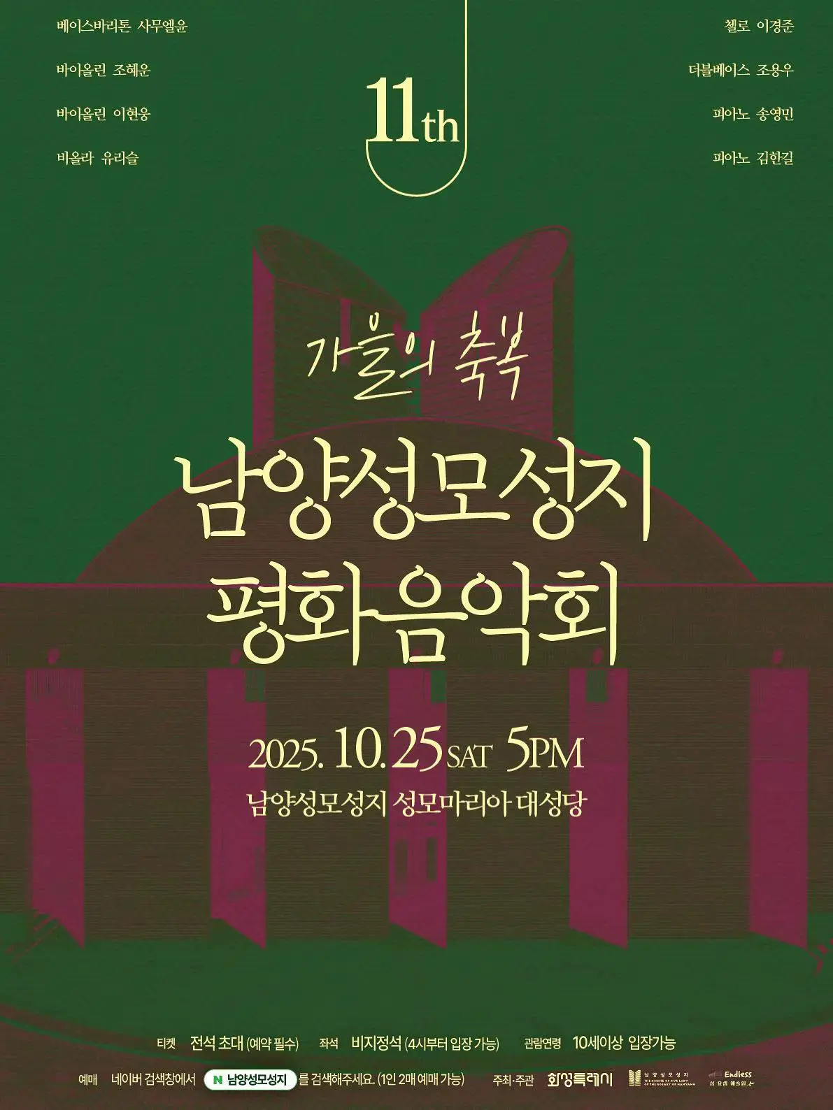 남양성모성지에서 ‘제11회 남양성모성지 평화음악회’를 개최합니다.