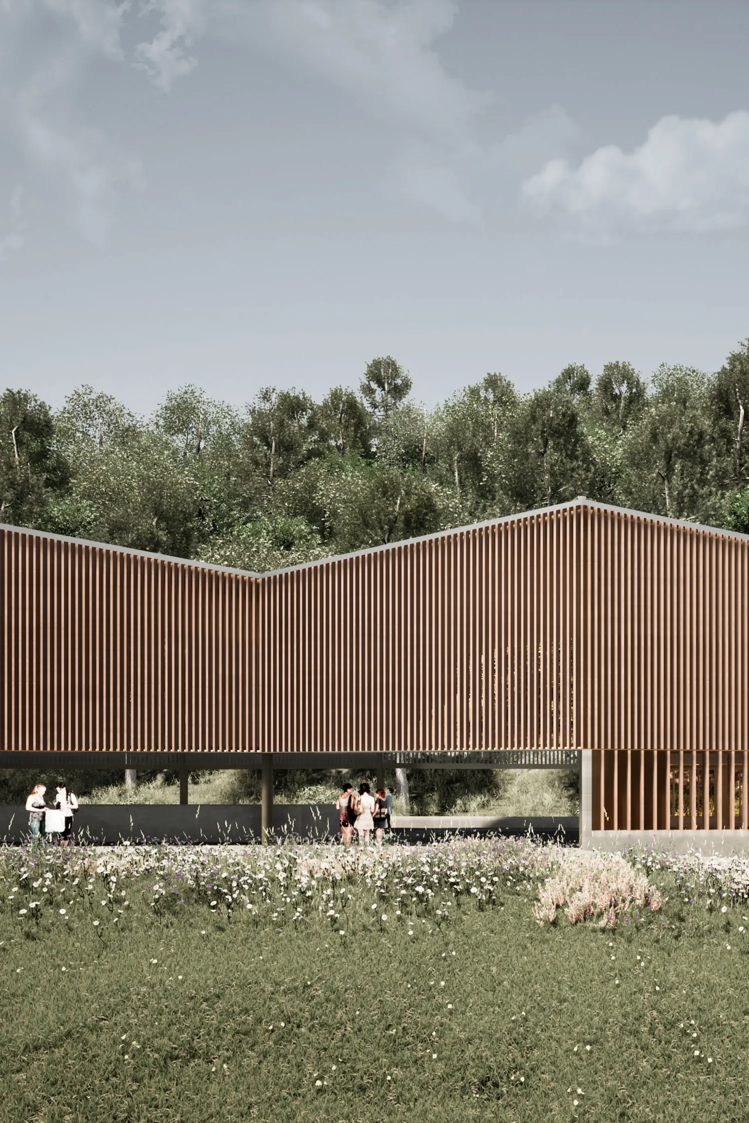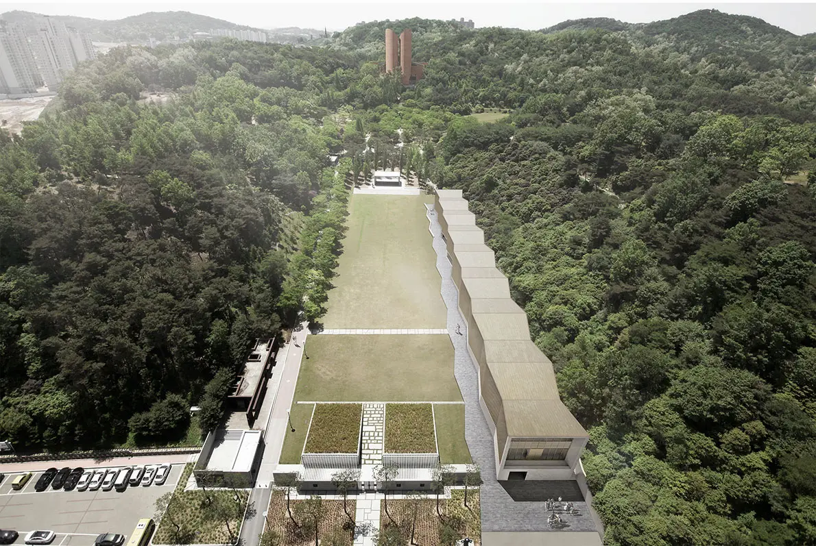 스위스에서 활동하는 젊은 건축가 이동준은 남양성모성지의 입구에서 방문객을 맞을 이 건축물을 땅의 흐름에 따라 길게 늘어선 선으로 만들어냈다. 얽혀 있는 많은 기능적 요소를 가지런히 담아내며 다소 복잡해 보일 수 있는 기능적 공간을 겉으로 내보이지 않는 방법을 택했다. 건축물의 외형은 시간이 흐르면서 그 나이를 드러내는 자연 재료를 사용해 시간의 흐름과 함께 공원의 일부가 되도록 계획했다. 단단한 매스로 땅에 뿌리내린 조형미는 다양한 성격의 예술원 프로그램을 하나로 묶어주기 위한 선명한 제스처다. 대지의 흐름에 따라 길게 배치한 건물은 단일한 조형미를 보여주지만, 하나의 지붕 아래 놓인 내부는 여러 프로그램이 유연하게 흐른다. 각기 다른 높이로 펼쳐지는 공간을 반 외부 공간으로 엮어내면서 안과 밖의 긴밀한 대응을 만들어냈다. 예술원은 남양성모성지의 초입에서 길을 이끄는 시각적 축을 만드는 동시에 다양한 접근과 교류가 가능한 풍요로운 공간을 제공할 것이다.